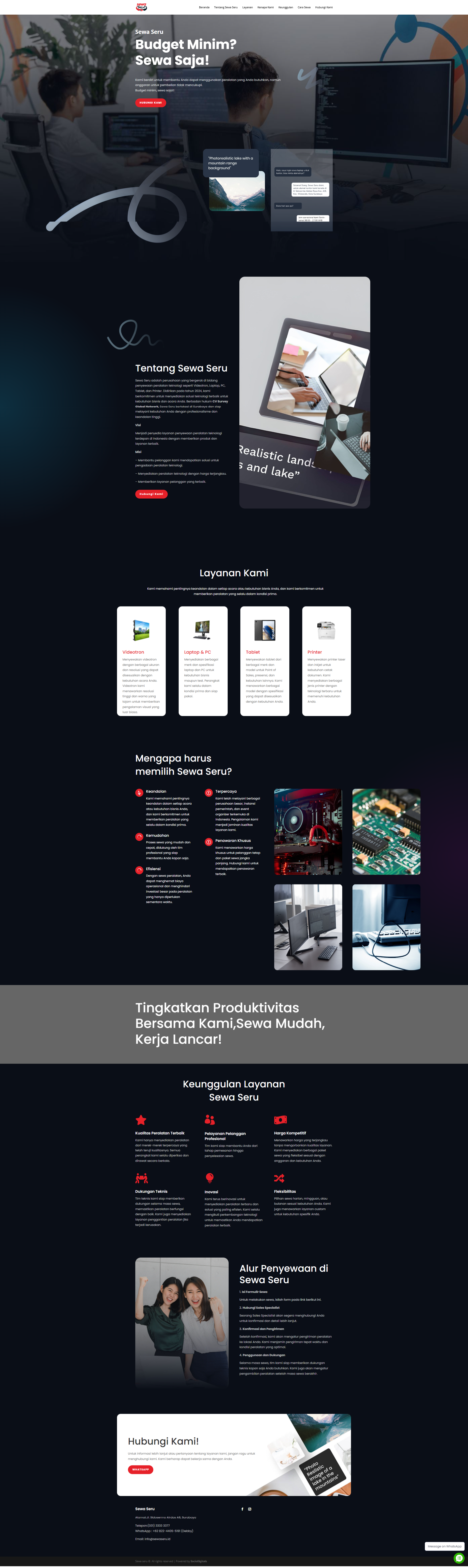 - Building Trust and Reputation: A professional and informative website helps strengthen Sewa Seru’s reputation as a reliable and trustworthy provider of technology equipment rentals.