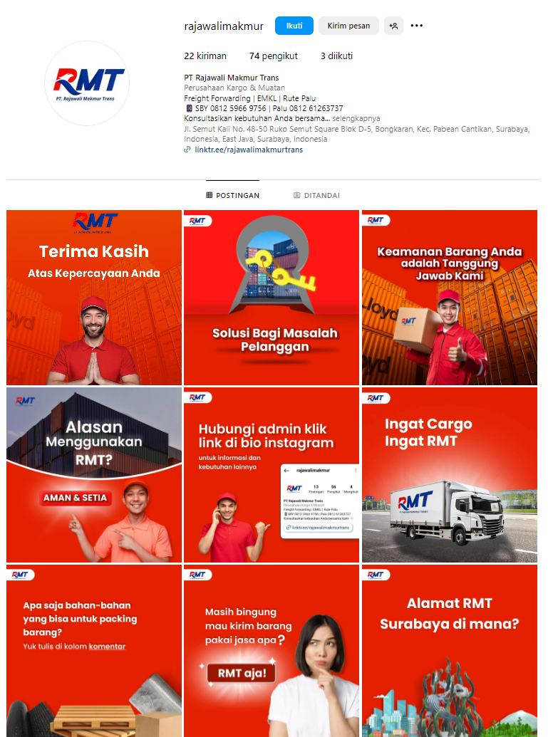 SocioDigitals is proud to announce its partnership with RPM Group, which consists of five major brands in the transportation and logistics industry: RPM Trans, Rajalog Logistik, RMB Trans, Panimar Trans, and Rajawali Makmur. In an effort to enhance digital reach and interaction, SocioDigitals handles social media management for the entire RPM Group, ensuring each brand can effectively reach their audience and strengthen brand image on digital platforms. The strategy implemented includes creating informative and engaging content, using consistent visuals, and increasing engagement through interactive content such as Q&As, customer reviews, and service updates.